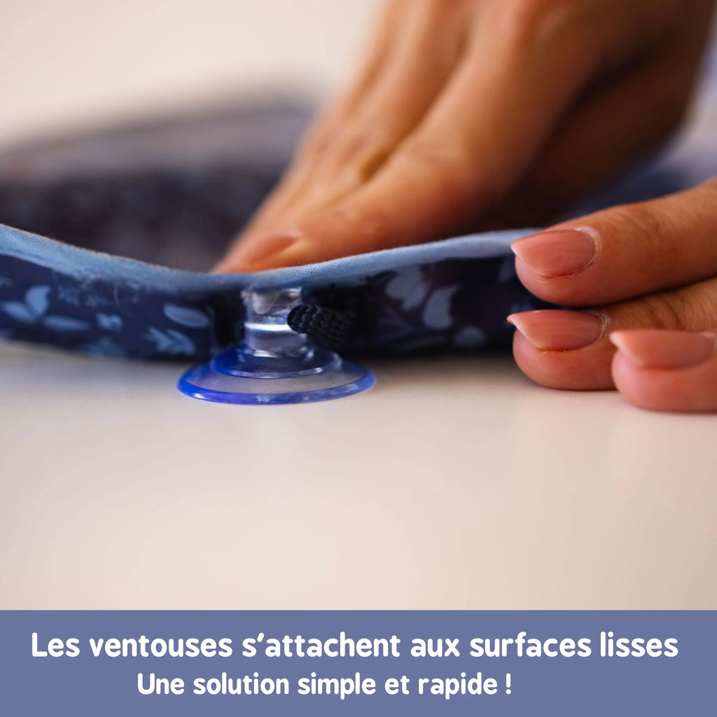 Our Cover & Catch All Bibs couldn’t be easier to use, just simply stick the suction pads onto the highchair, tray or smooth table surfaces and let your baby go wild with whatever they want to do, be this eat, drink or play! (Please note that suction cups will not stick optimally to rough or textured surfaces such as wood, including the Stokke Tripp Trapp high chair.)