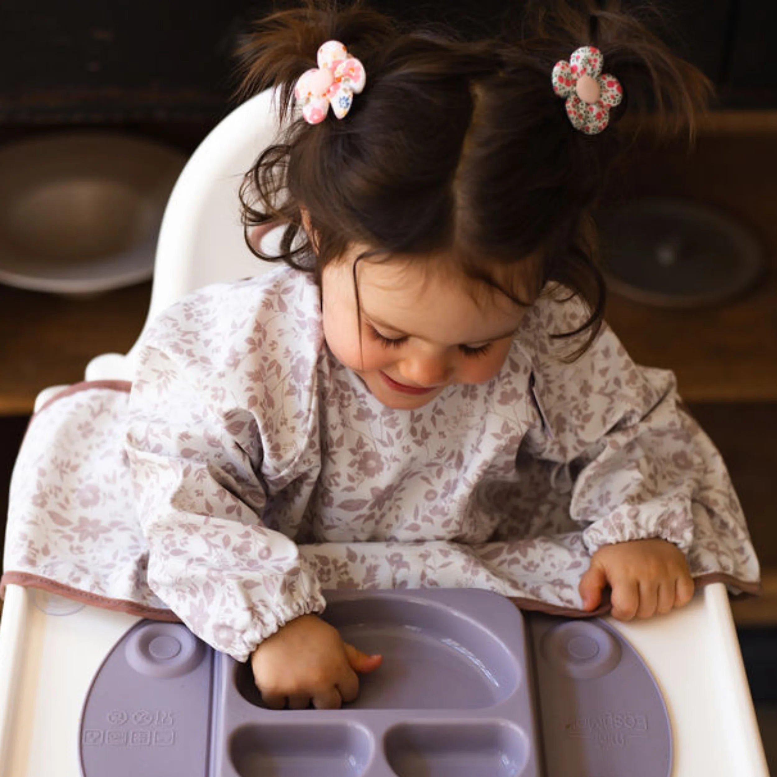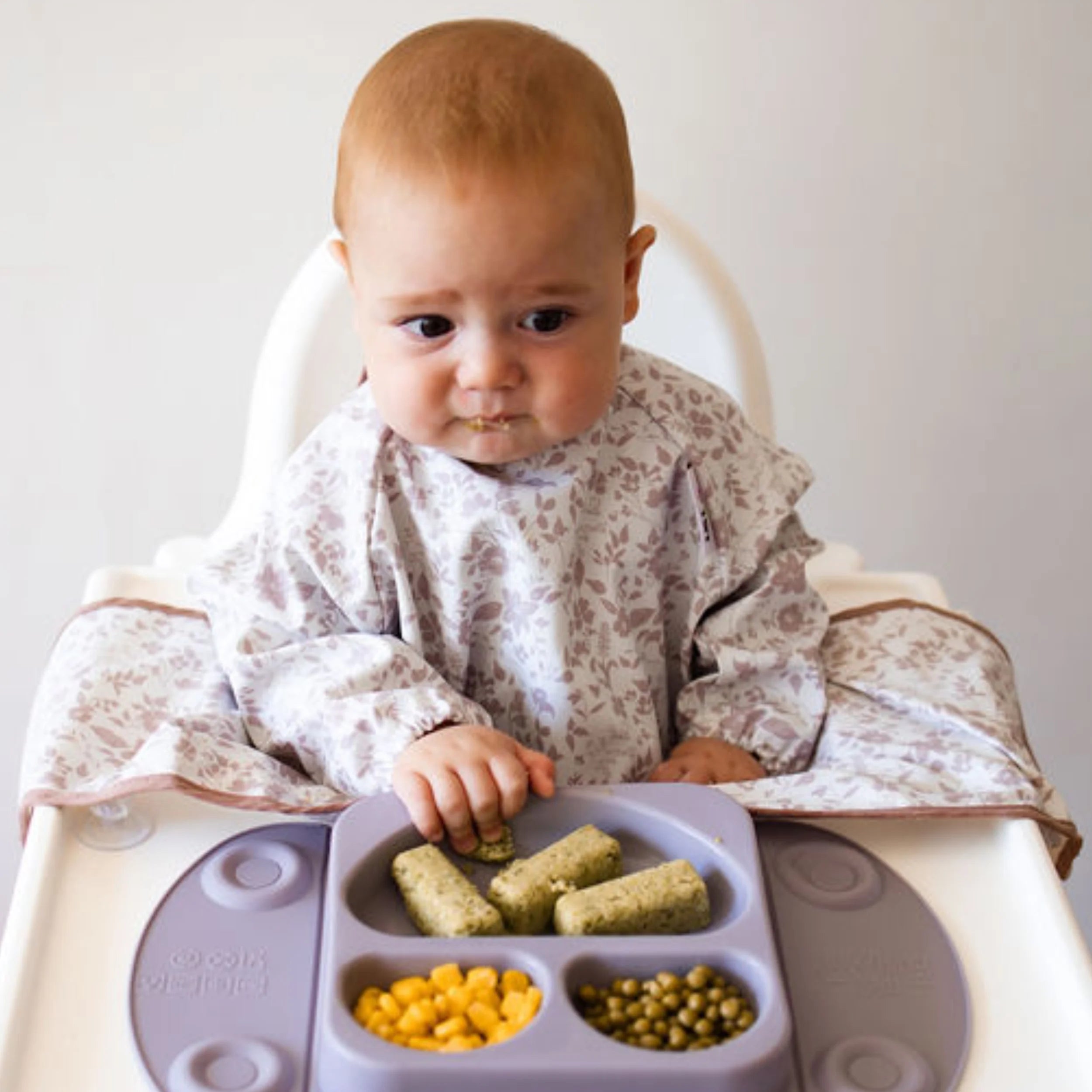 The award-winning weaning bib innovation from Tidy Tot, this clever coverall bib attaches to smooth surfaces to catch dropped food and spills. Simply attach the suction cups to your highchair, highchair tray or smooth table surface – it’s so quick and easy to use! (Please note that suction cups will not stick optimally to rough or textured surfaces such as wood, including the Stokke Tripp Trapp high chair). With long sleeves for full protection, an adjustable neck fastening and super-soft, water resistant fabric, this bib offers complete protection for clothes and highchair seats from the mess and spills of weaning. Knowing baby’s clothes are fully protected means they can be left to focus on the important skills needed to practice independent self-feeding – without all the mess and stress!