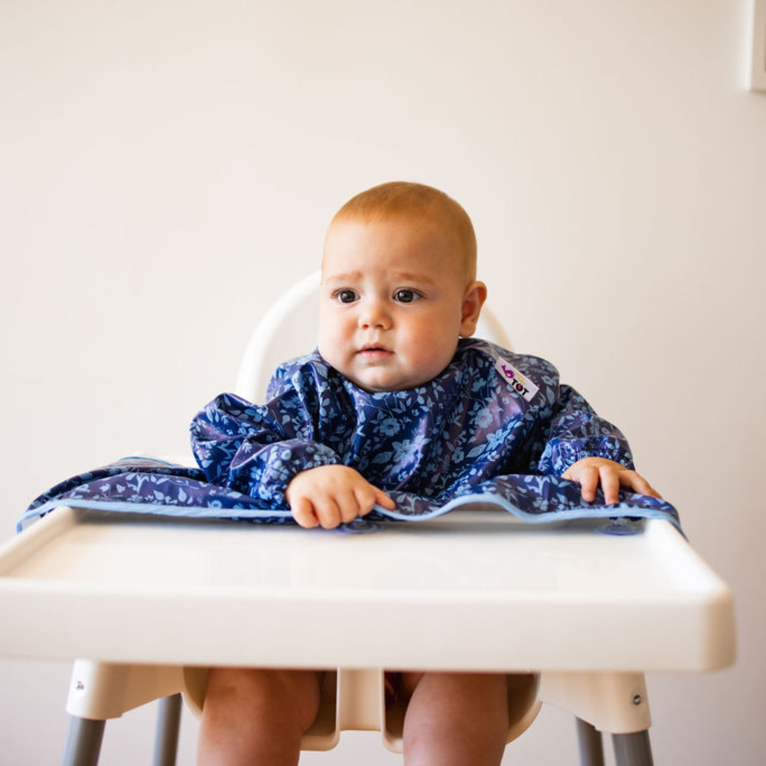 The perfect compact weaning bib, making mealtimes and messy play easier for baby and you!
