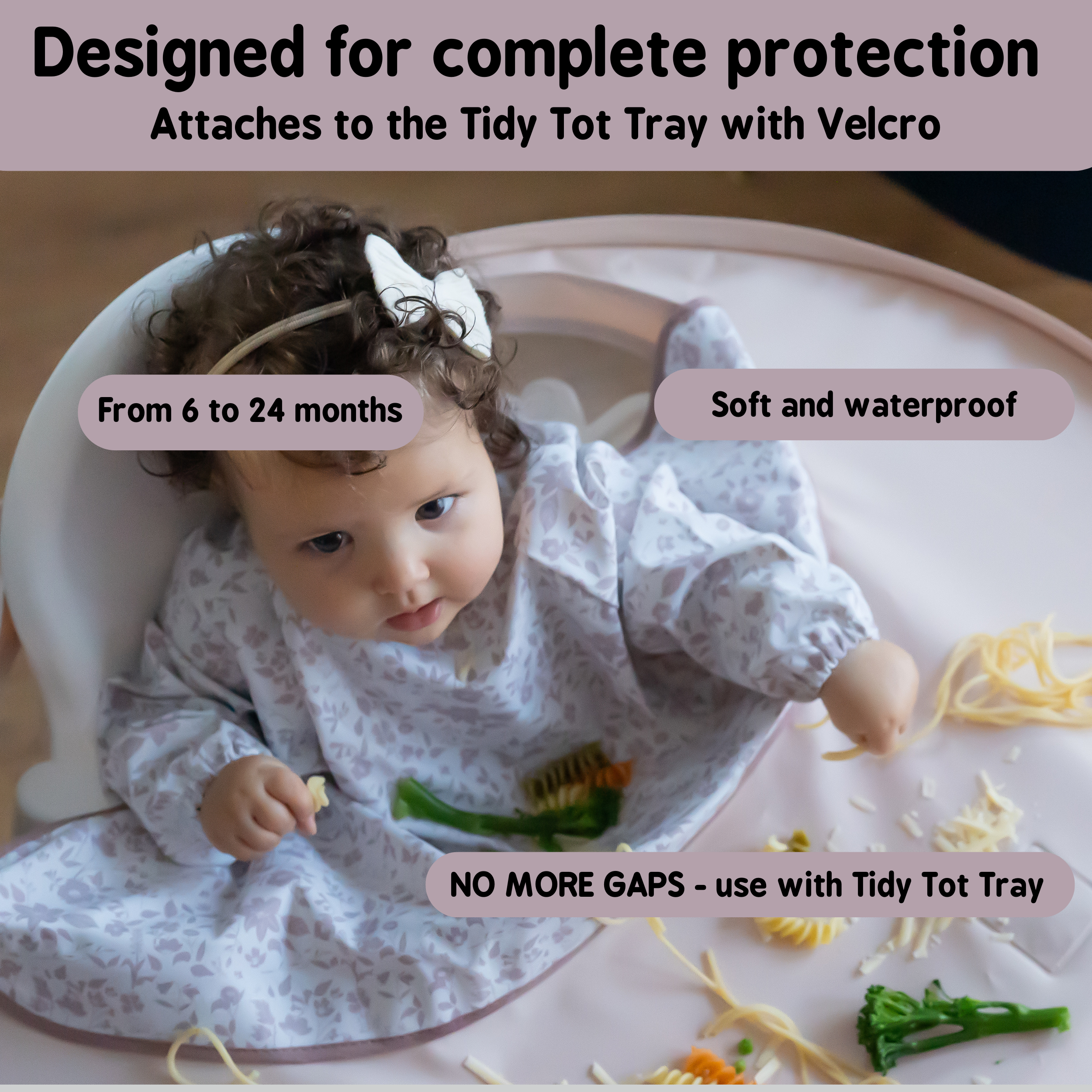 Available in a choice of beautifully stylish and fun prints, the Tidy Tot Coverall Bib for Kit offers full coverage from the mess and spills of weaning thanks to long sleeves and super-soft water resistant fabric. Perfect as an additional or spare bib to be used with theTidy Tot Bib & Tray Kit system. The adjustable neck fastening allows for a snug and comfortable fit for babies aged up to 2 years. Includes a removable wash strip to allow you to close the hook and loop fastening when machine washing or using without the Tidy Tot Tray to prevent snagging on other items.