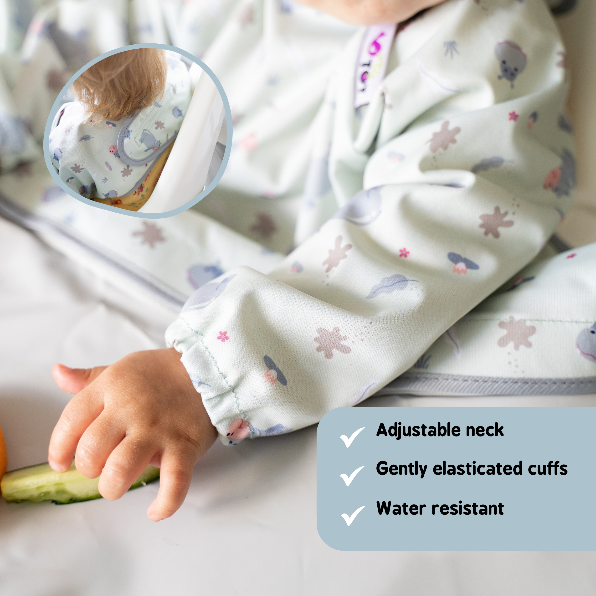 The Tidy Tot Coverall Bib for Kit protects baby's clothes from weaning mess and food spills with its full coverage design, available in long or short sleeve options.