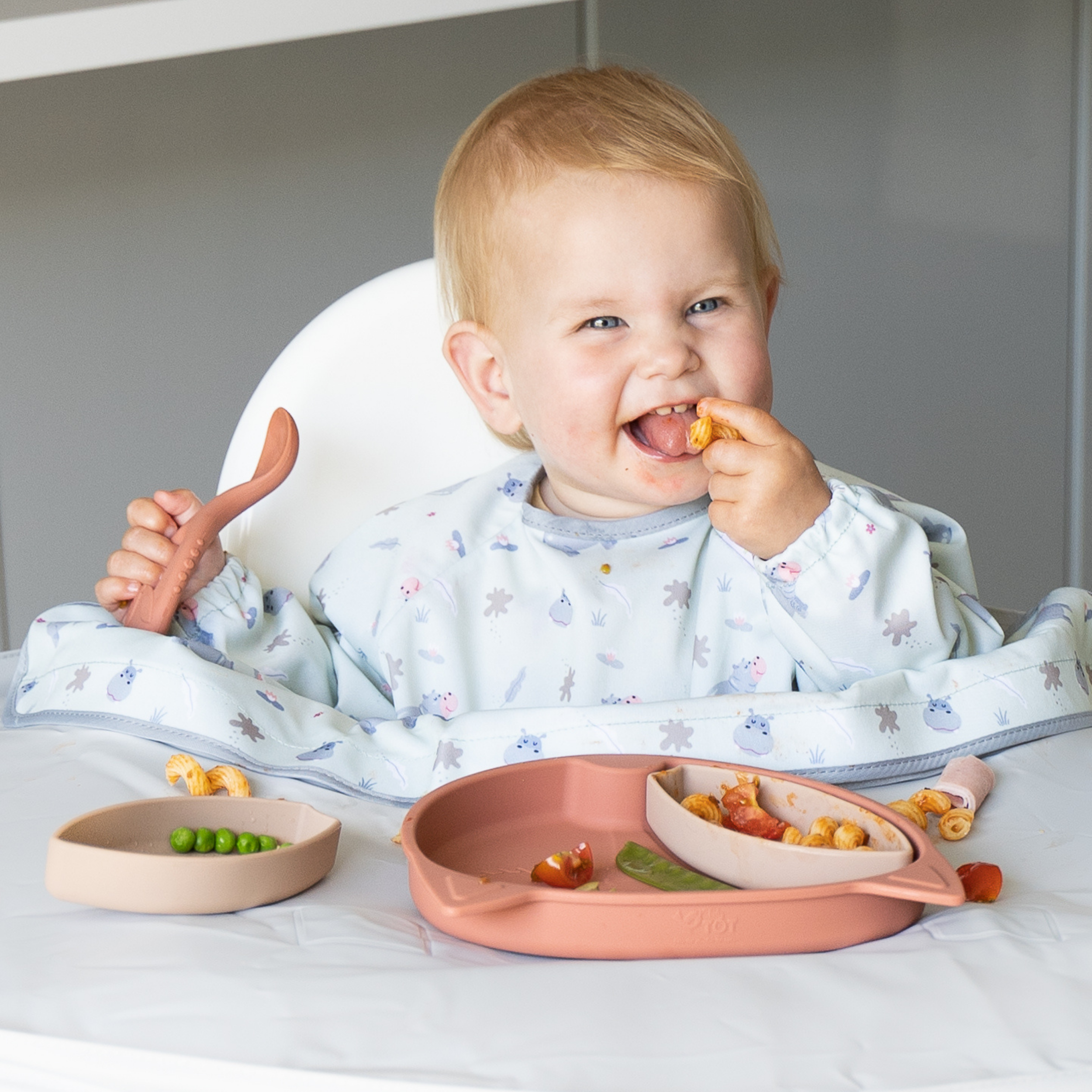 The Tidy Tot Coverall Bib for Kit Twin Pack offers even more practical protection, effectively shielding babies from mealtime and weaning mishaps. Use every mealtime to make the most of your Tidy Tot Bib & Tray Kit.