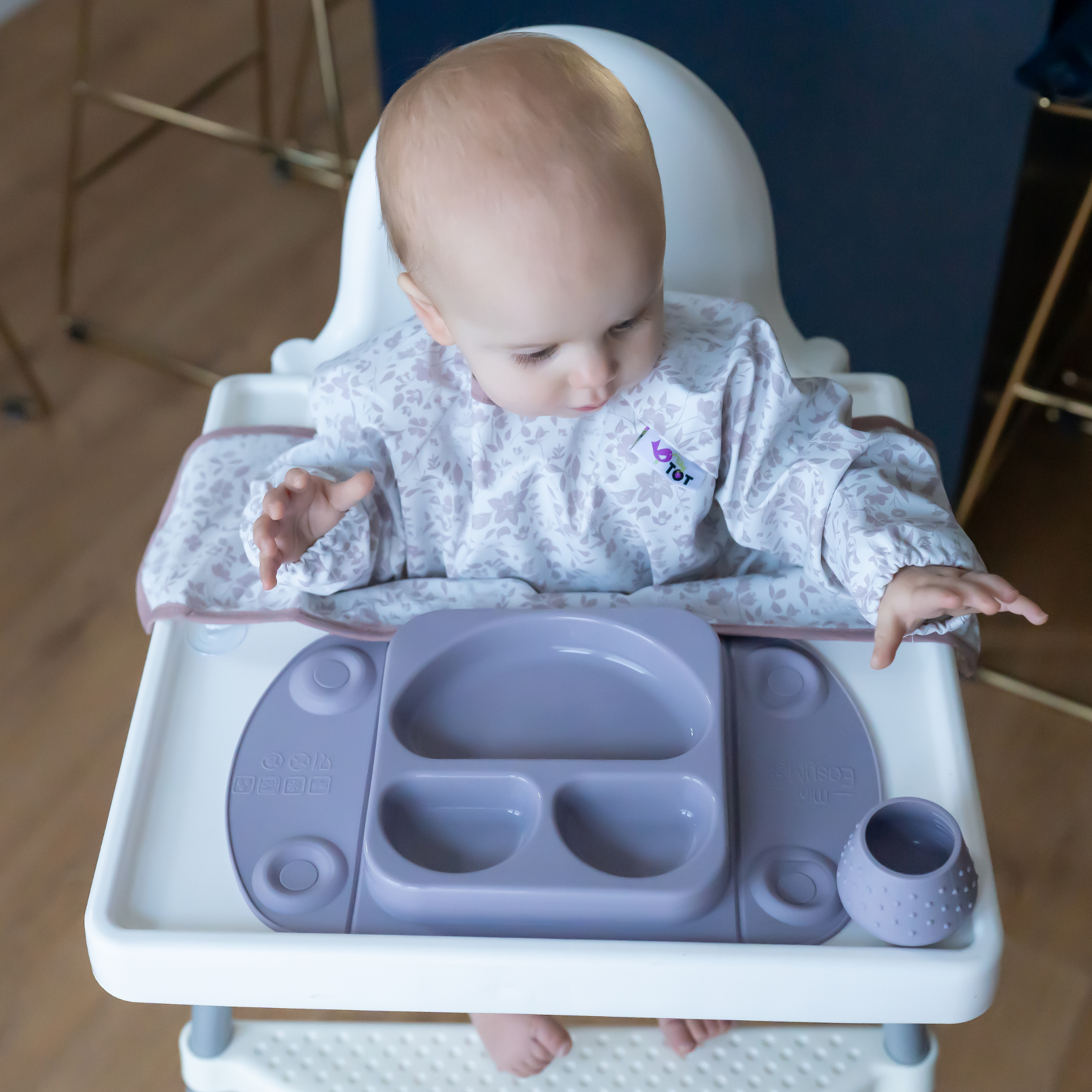 Available in a choice of beautifully stylish and fun prints, the Tidy Tot Coverall Bib for Kit offers full coverage from the mess and spills of weaning thanks to long sleeves and super-soft water resistant fabric. Perfect as an additional or spare bib to be used with theTidy Tot Bib & Tray Kit system. The adjustable neck fastening allows for a snug and comfortable fit for babies aged up to 2 years. Includes a removable wash strip to allow you to close the hook and loop fastening when machine washing or using without the Tidy Tot Tray to prevent snagging on other items.