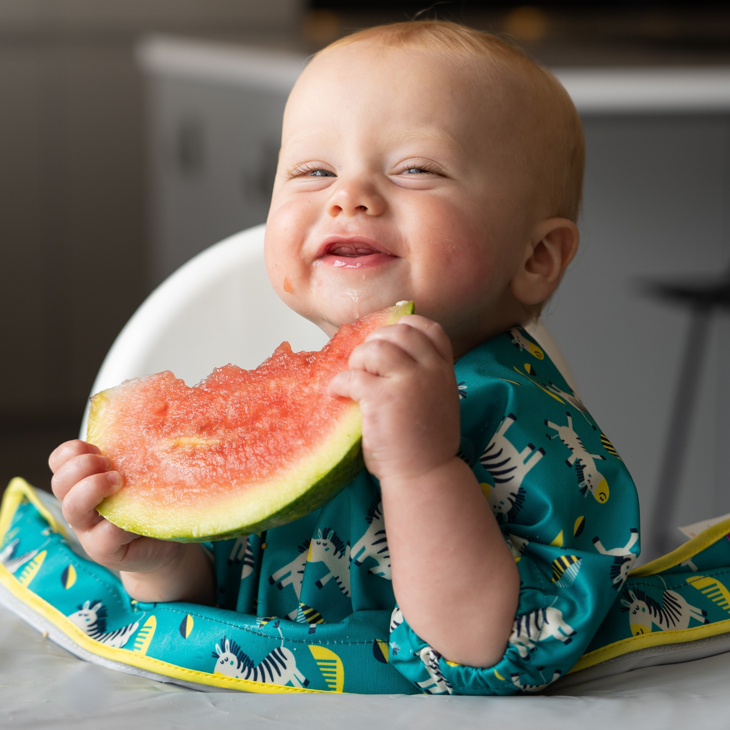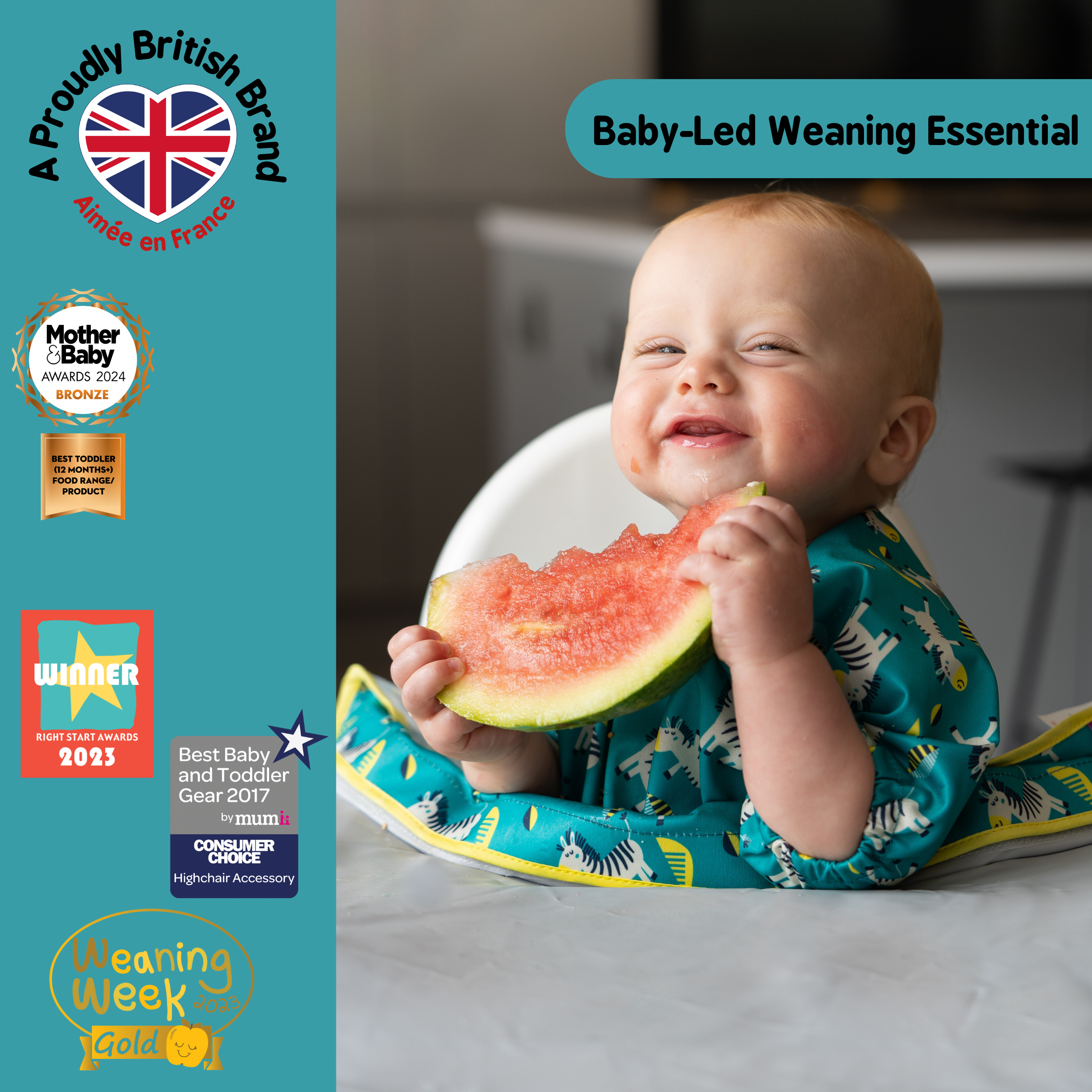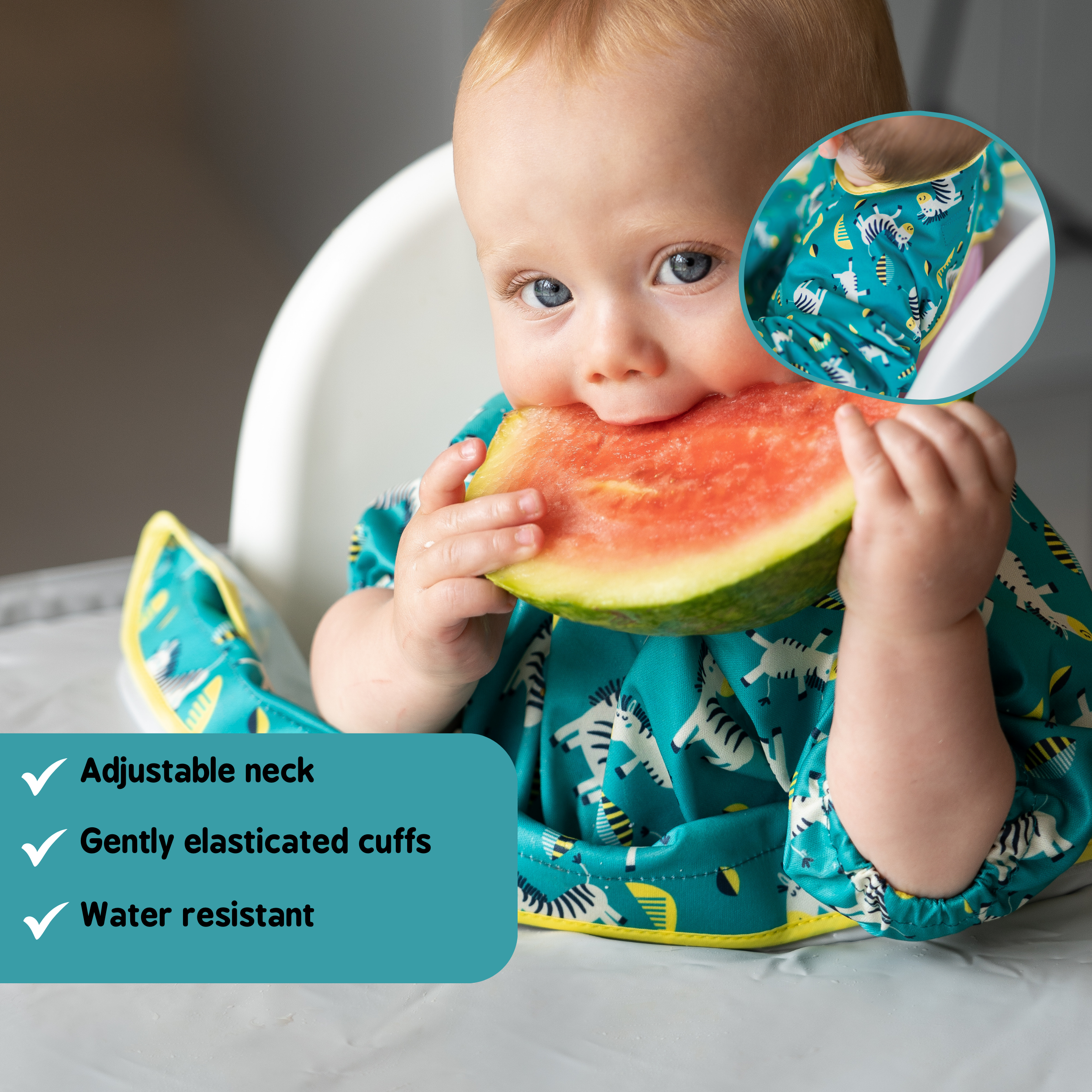 Crafted from super soft, water-resistant fabric, these handy bibs are easy wipe-clean, or machine washable.