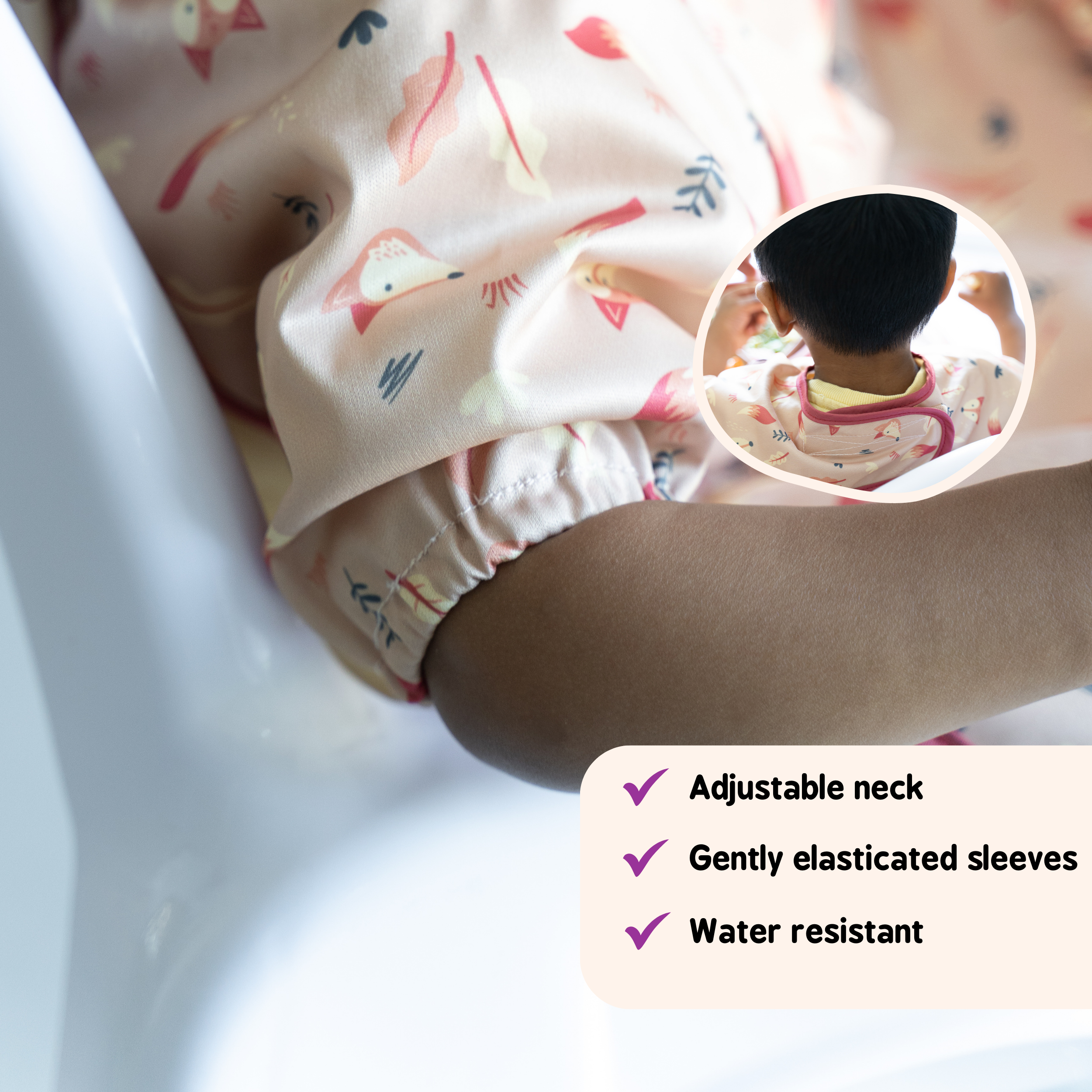 Our Coverall Bib for Kit has been designed to be used as part of the Bib & Tray Kit system, but also works as a fantastic coverall bib if used on its own!