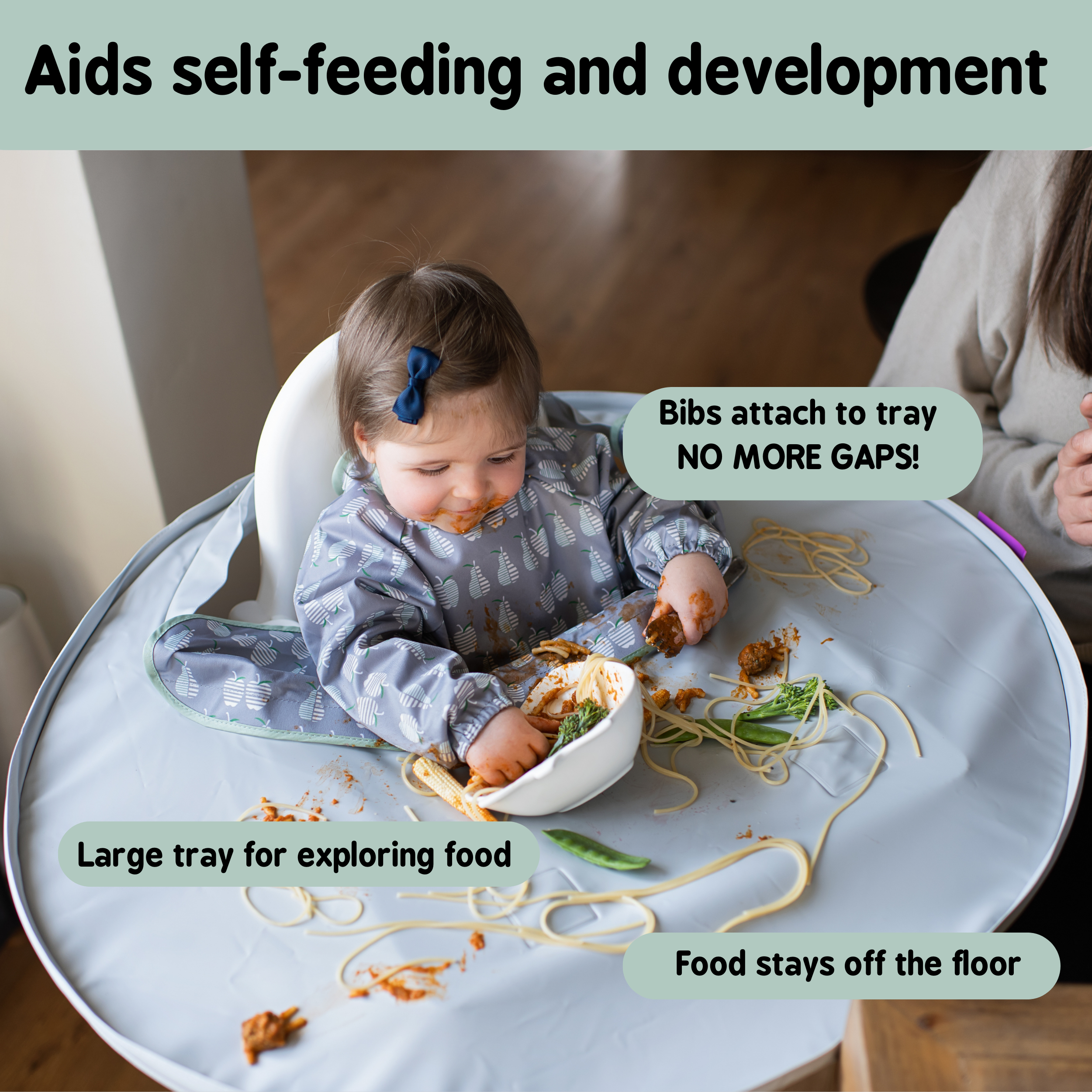 Ideal for all forms of weaning, including baby-led weaning, let baby explore and discover their food and develop their self-feeding skills whilst saving yourself all the washing and cleaning that comes with messy mealtimes!