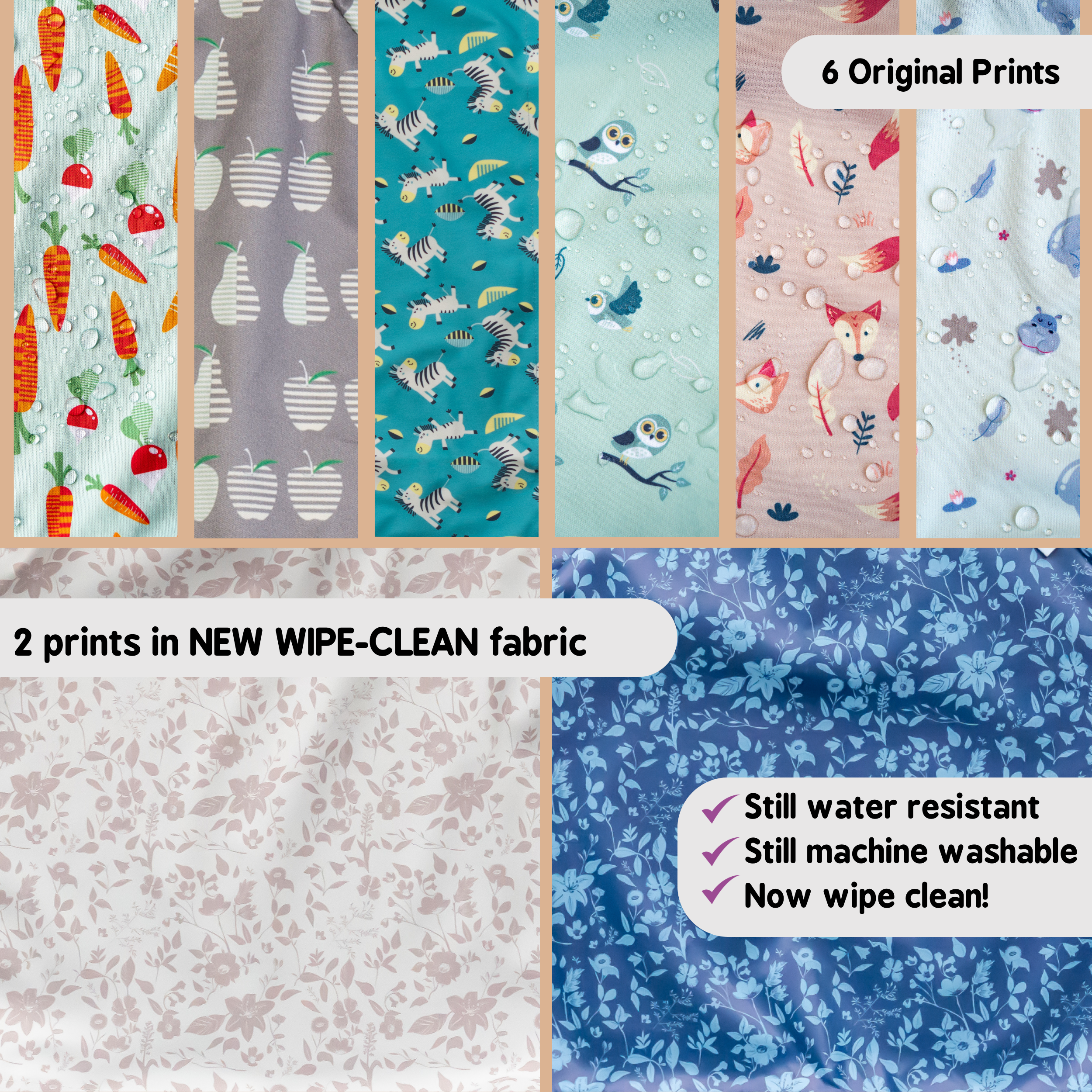 Our Coverall Bibs for Kit are now available in 2 types of fabric – baby soft or wipe clean. Whichever fabric you choose, our bibs are water resistant, machine washable and tumble dry safe.