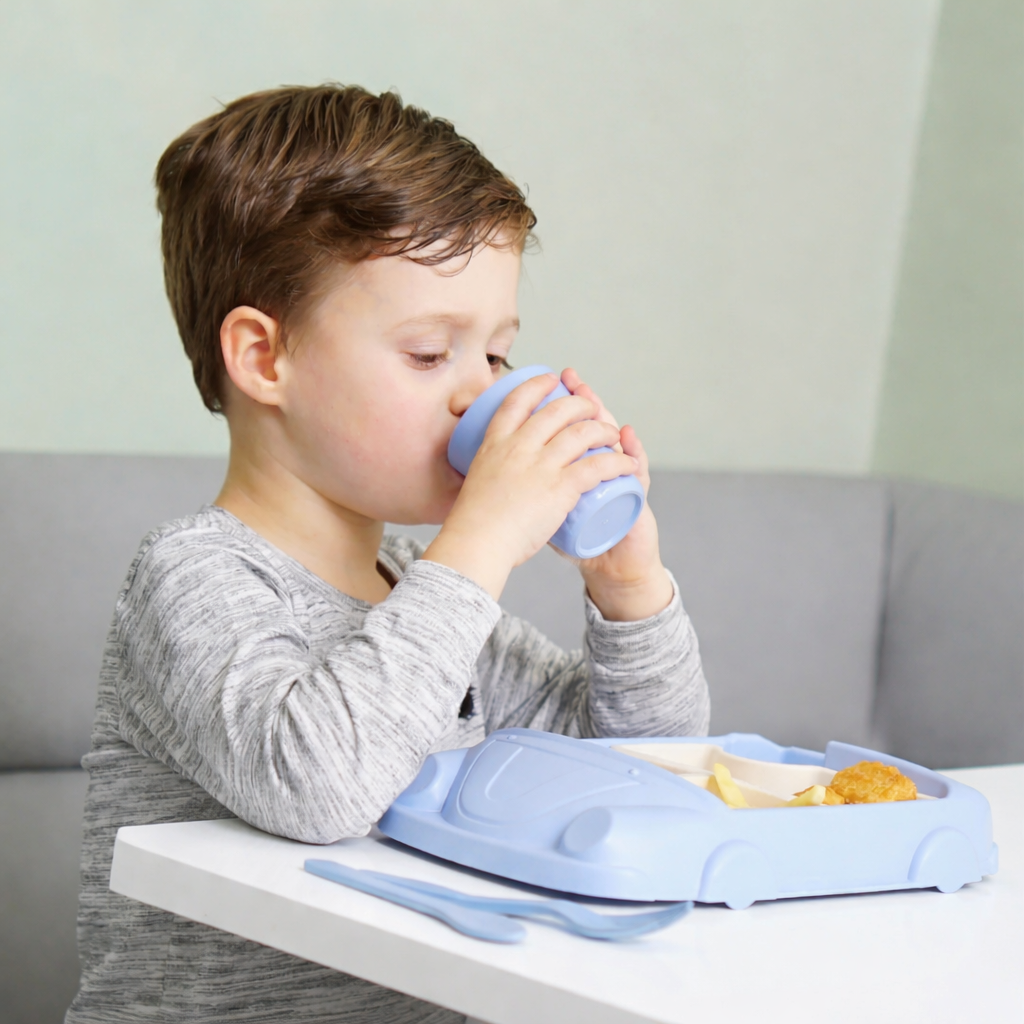 Unlike standard kids plates, this car-shaped plate features two removable sectioned compartments, allowing you to serve a variety of foods separately or as one full meal. This makes it an excellent choice for picky eaters who prefer their food not to mix. Plus, the included kids cutlery set (fork and spoon) and beaker cup complete the set for an all-in-one mealtime solution.
