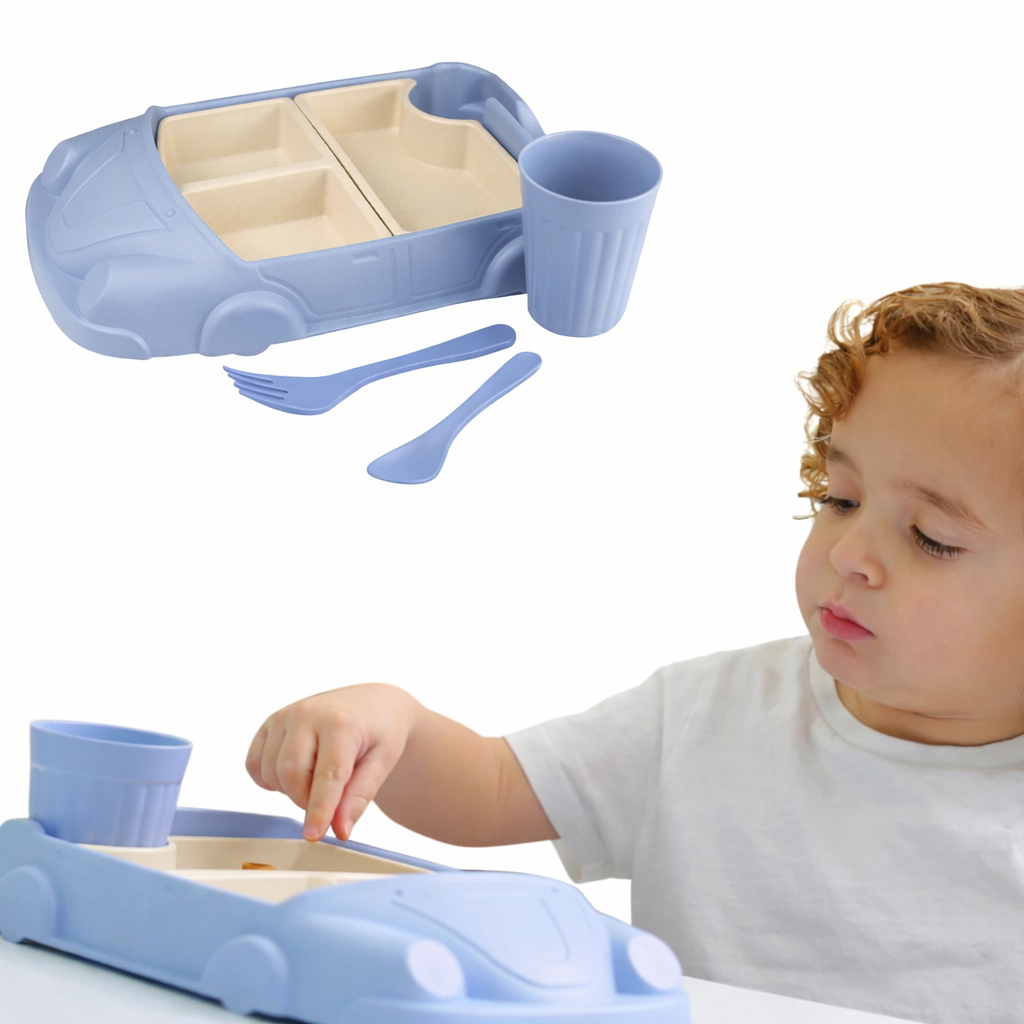 Bamboo Car-Shaped Kids Feeding Set – The Perfect Kids Tableware for Independent Eaters!